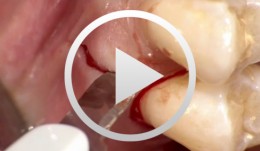 Mengel, Reiner / Foitzik, ChristianOverview: Part 1 - Incision and mobilization of the mucoperiosteal flap - Cleaning the bony defect - Screw insertion for support, membrane application and fixation - Suture closure Part 2 - Opening of the mucosa above the region of augmented bone - Preparation of tunnel and bone bed for an open screw-type endosteal implant (Straumann® implant) - Use of single button sutures for tension-free wound closure Contents: This female patient presented with bone loss due to a radicular cyst at tooth 27 and peri-implantitis at tooth 26. Four months after extraction of the respective tooth and implant, guided bone regeneration (GBR) was carried out using supporting screws and an e-PTFE membrane for augmentation of the posterior tooth region of the maxilla. Four months after GBR the insertion of an implant took place.